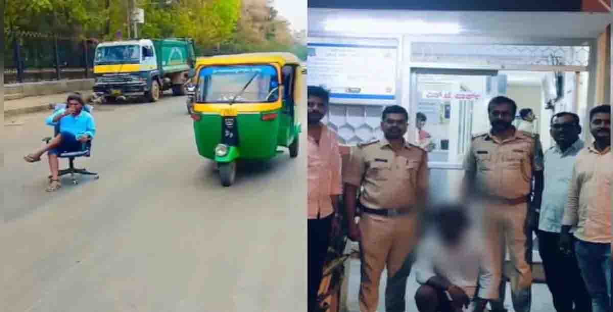 As per news report of NDTV,A Bengaluru man has been arrested after a video of his dangerous stunt on a public road, posted on Instagram, drew the attention of the police. The man is seen in the video sitting on a chair on a road, calmly drinking tea as autorickshaws and two-wheelers pass him by.
