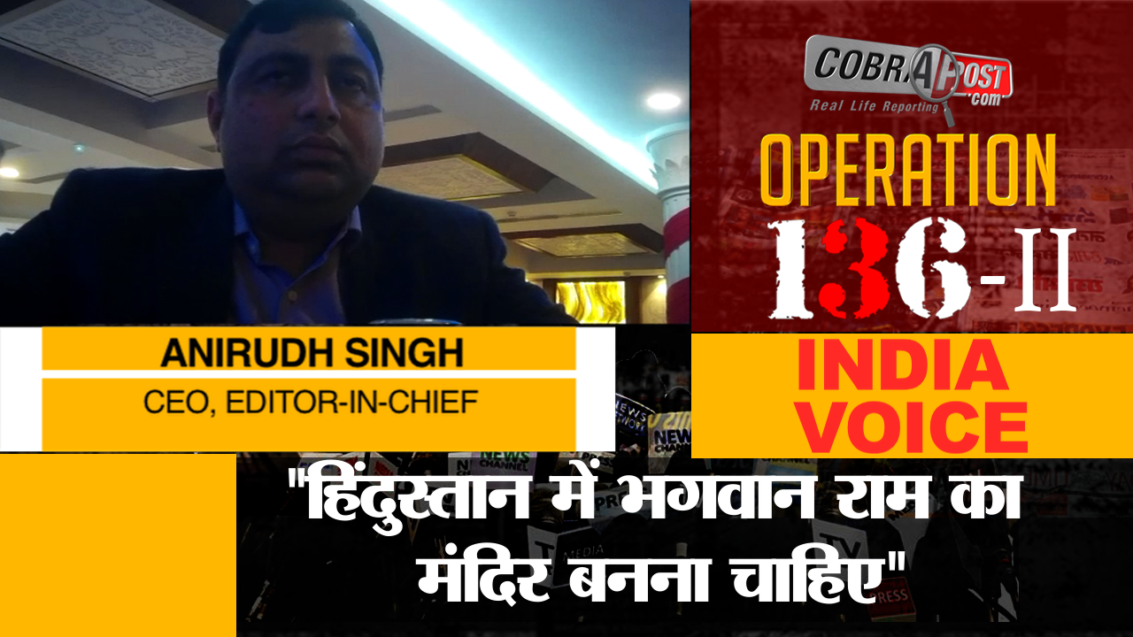 Seeking such support as the client the journalist has put on his table in the form of his malicious media campaign, Aniruddh assures that he will begin to work on the proposed agenda soon: “Aur aap logon ka sahyog mil jayega ashirvaad mil jayega toh zaldi isko kar lenge (And if we get your support and blessings, we will undertake it soon).” Assuring him full support and cooperation, the journalist asks him if it was fine with him what he was doing, that is, promotion of Hindutva. Talking like a Hindu fundamentalist, journalist Aniruddh declares: “Sir main iss vichardhara ka bahut strong supporter hoon, matlab main un sab logon mein se hoon main yahin aapke saamne baitha hoon main sarvajanik roop se keh sakta hoon ki Hindustan mein Bhagwan Ram ka mandir bananaa chahiye, isliye bananaa chahiye kyonki yahan agar nahi banega toh kahaan banega (Sir, I am a very strong supporter of this ideology. I mean I am one of those who can publicly, like I am sitting right in front of you, say that a temple of Lord Ram should be built. Why so? If it cannot be built in Hindustan, then where it will be)?”