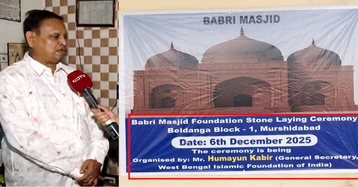 As per news report of NDTV,The venue for suspended TMC MLA Humayun Kabir's foundation-stone ceremony for a 'Babri Masjid-style' mosque at Beldanga in West Bengal's Murshidabad on December 6 turned into a massive worksite on Friday, with Saudi clerics expected, food for thousands being prepared, and authorities enforcing a tight security grid.