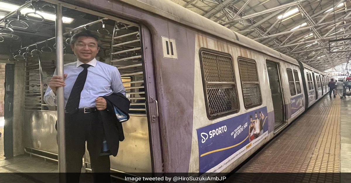 Hiroshi Suzuki travelled in a local train in Mumbai and also posed for a photograph while standing at the gate...