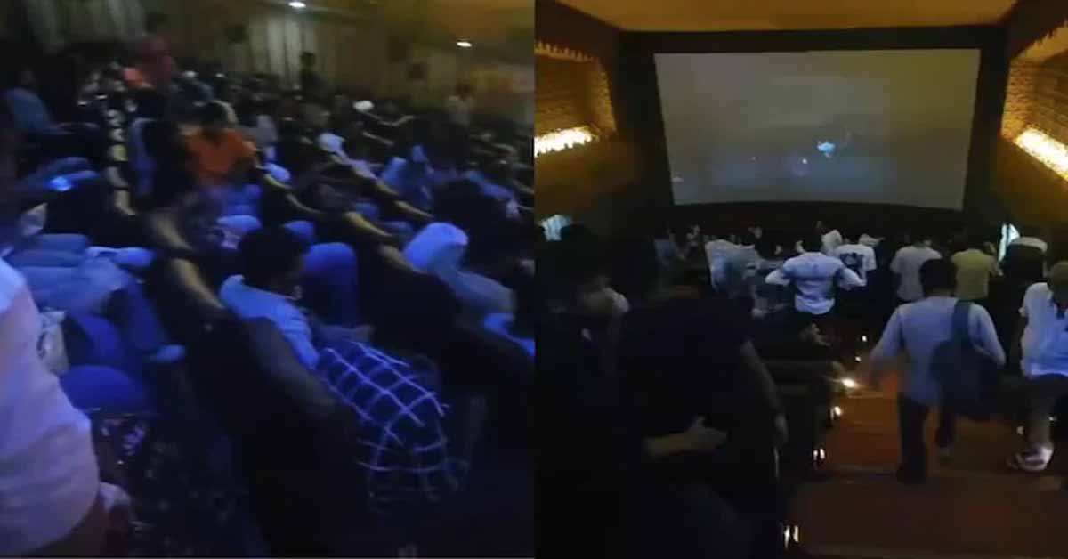 Several movie-goers started coughing and complained of throat irritation after the incident, due to which the screening was stopped.