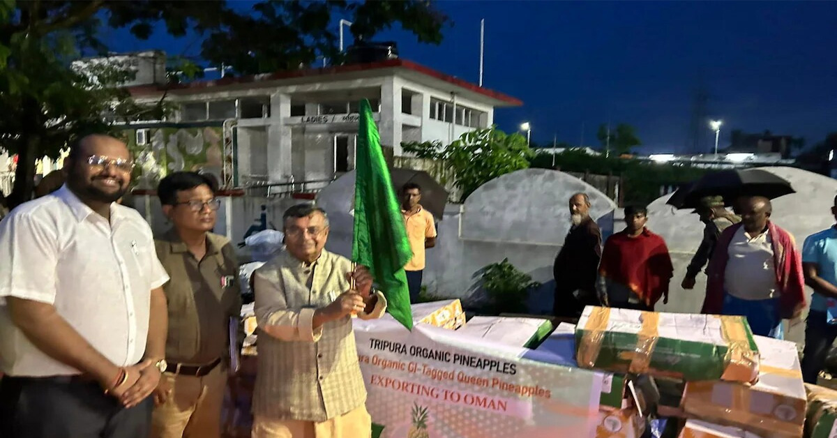 Tripura Agriculture and Farmers Welfare Minister Ratan Lal Nath flagged off a consignment of 600 kg of queen pineapple for...