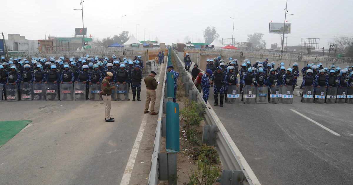 Farmers Protests: In preparation for a march towards Delhi, farmer organisations have formed a human chain at the Shambhu border.