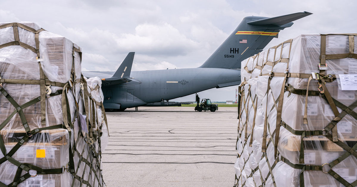The US military has flown a C-17 aircraft loaded with 70,000lb (31,751kg) of Swiss Nestle baby formula to Indianapolis from...