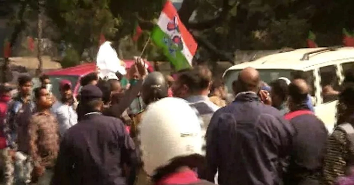 Trinamool Congress workers showed black flags, shouted slogans and surrounded the vehicle of rebel party MP Sunil Mondal in Kolkata...