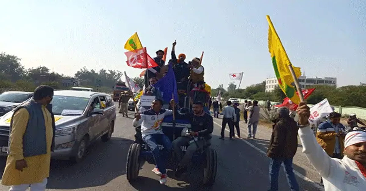 Farmers agitating against the centre's farm laws began a tractor march from Shahjahanpur on the Rajasthan-Haryana border Sunday morning, in...
