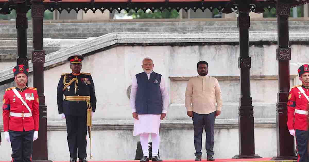 Sri Lankan President Anura Kumara Dissanayake greeted him at the venue, marking the start of a packed diplomatic schedule.